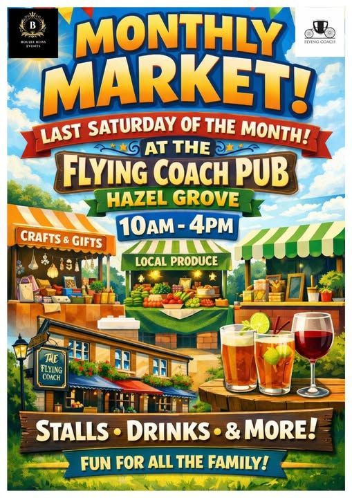 Join JK Home & Gifts at the vibrant Monthly Market at The Flying Coach Pub, Hazel Grove, on Saturday 25th April from 10am–4pm.